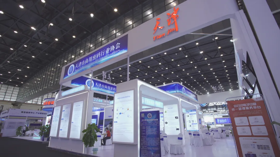 为贯彻落实党的二十大精神和习近平总书记总体国家安全观,深入实施《密码法》《商用密码管理条例》,促进我国密码事业发展,天津市商用密码行业协会携手光电通信、赢达信、国芯科技、光电安辰、灵创智恒、中环CA、安云印、飞腾信息、云安科技、南大通用、宝牧科技等11家骨干会员单位联合参展,共展示50多款产品和系统,其中有20多项为首次展示的新技术、新产品,接待客户400多家,开展交流合作项目30余项,全面展示了天津商密产业的发展特色和成就。